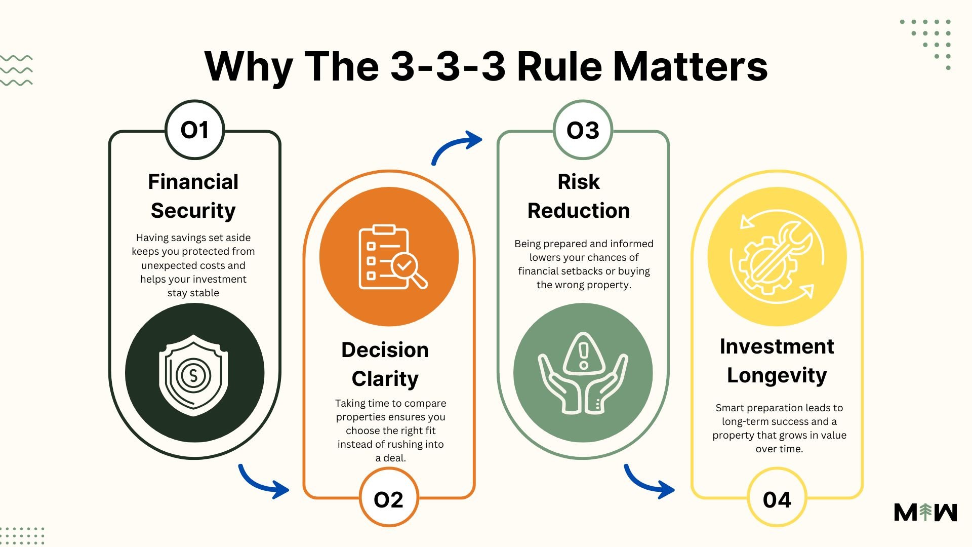 The 3-3-3 rule in real estate is designed to protect buyers from rushing into deals without enough financial or practical preparation. It’s built on three straightforward steps that help you assess your ability to buy and manage a property responsibly.